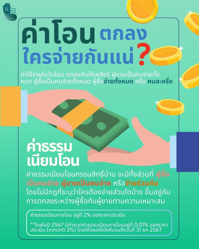 ค่าใช้จ่ายในวันโอน ตกลงกันให้เคลียร์ เจ้าบ้านเป็นคนจ่ายทั้งหมด ผู้ซื้อจ่ายทั้งหมด หรือ คนละครึ่ง ?